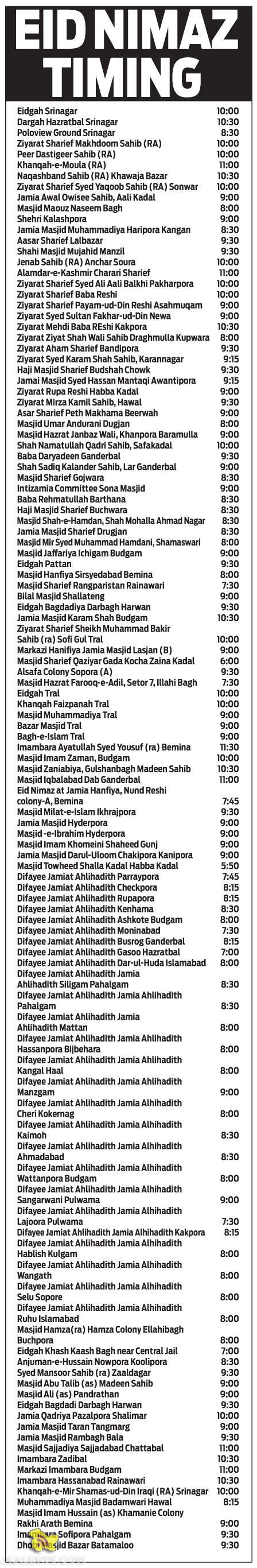 EIDNIMAZ TIMING IN JAMMU AND KASHMIR