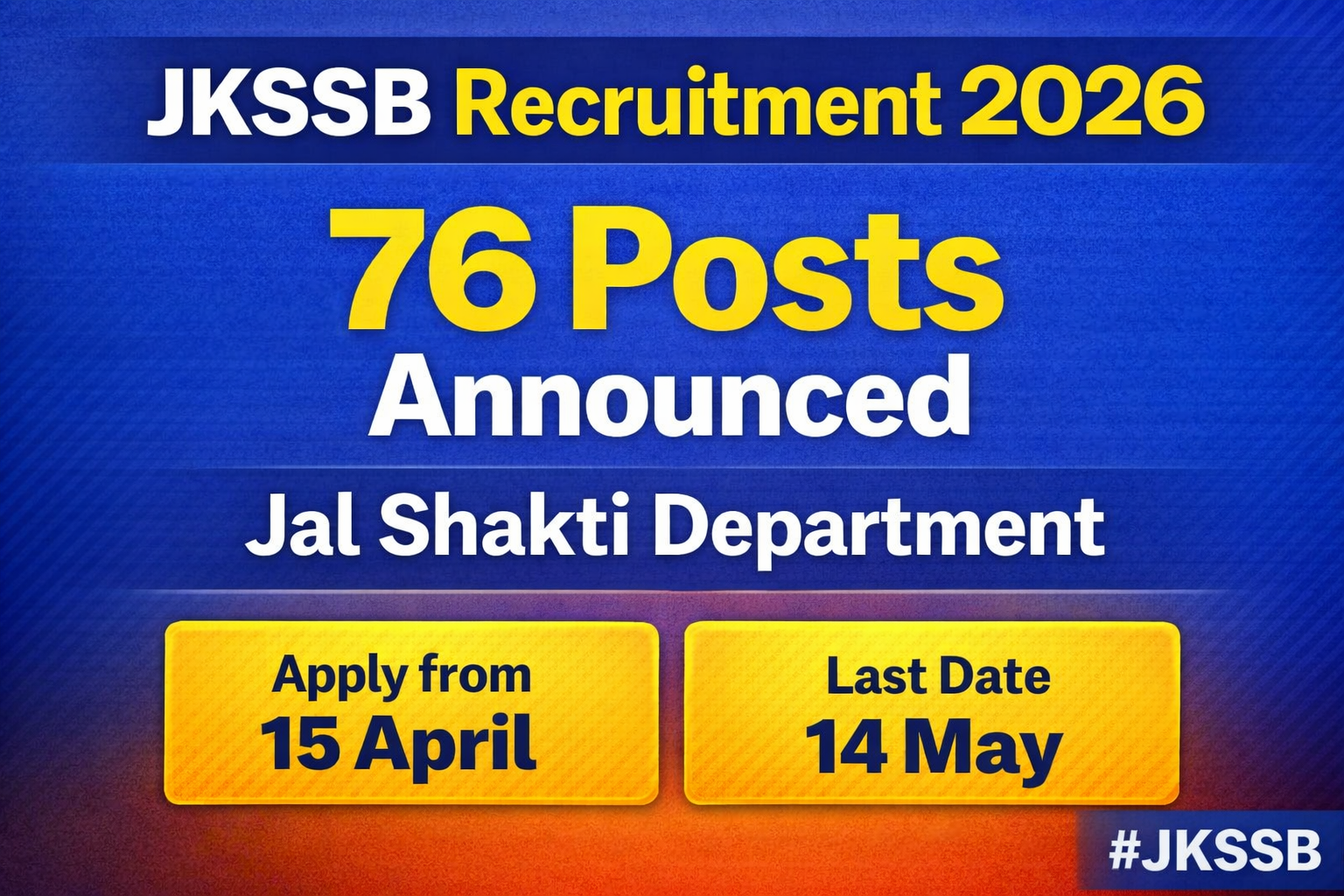 The online application process will begin from 15 April 2026 and the last date to apply is 14 May 2026. Interested and eligible candidates can apply through the official JKSSB website.