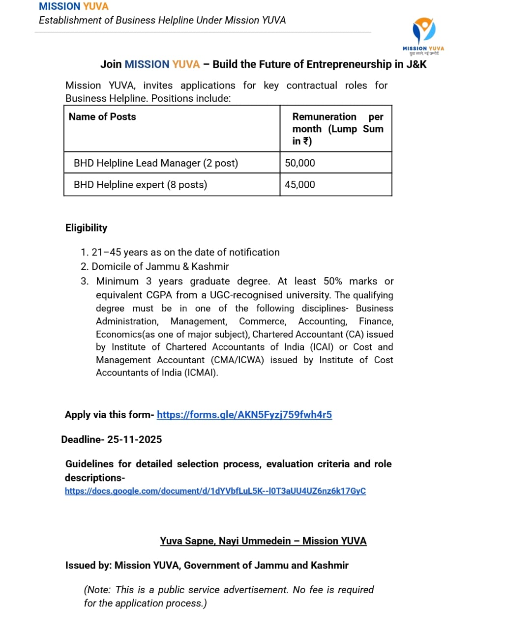Issued by: Mission YUVA, Government of Jammu and Kashmir