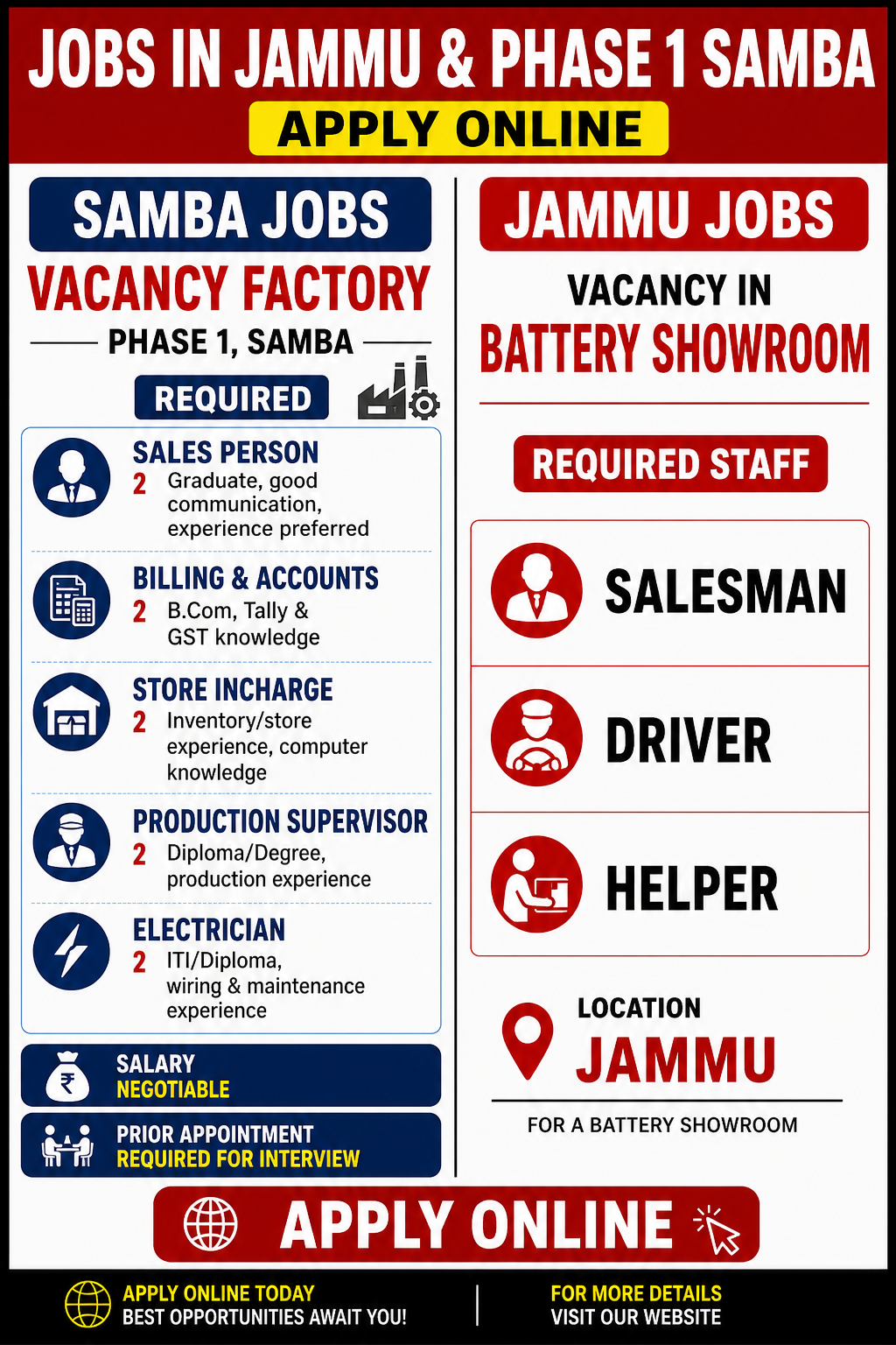Jobs in Jammu and Phase 1 Samba Apply online.