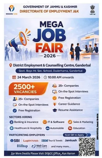 MEGA JOB FAIR 2026 District Employment & Counselling Centre, Ganderbal Govt. Boys Hr. Sec. School, Duderhama, Ganderbal