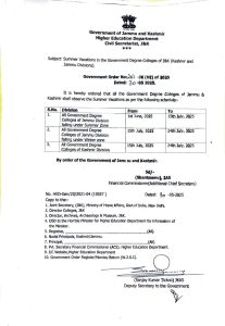 Summer Vacation in the Government Degree Colleges of J&K (Kashmir and Jammu Divisions).