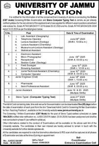 Jammu University Written Exam and Steno Computer Typing Test scheduled.