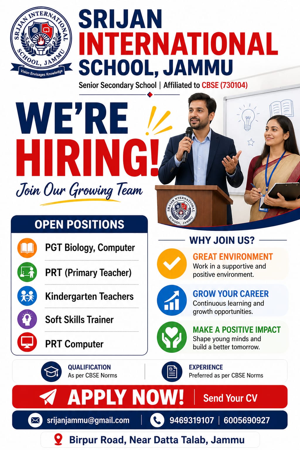 Srijan International School Jammu Recruitment 2026.